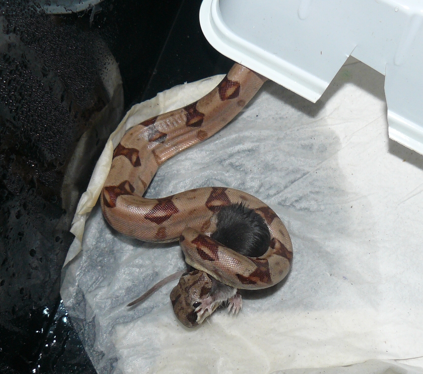 Nezařazené Mláďata hroznýšů z našeho odchovu už krásně baští 10.7.2019 Petr Celkem máme 16 mláďat hroznýše královksého (Boa constrictor). Většina jich je po 3 úspěšném samostatném nakrmení. Krásně baští malé skákavky. U mláďat převažují samičky nad samečky.