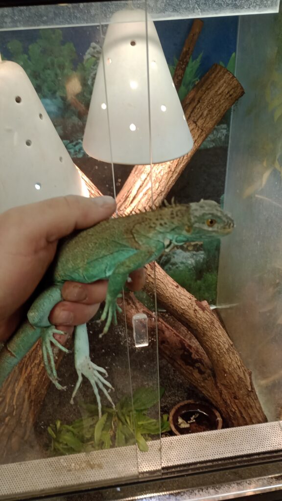 Leguán zelený (Iguana iguana) se v ČR množí opravdu minimálně a odchovaná mláďata jsou prakticky nesehnatelná. Leguány zelené chováme již téměř 20 let, ale bohužel se nám nedaří je rozmnožit. Nabízená mláďata jsou vždy v dobrém zdravotním stavu a dobré kondici bezrpoblémů přijímají potravu a jsou částečně uvyknutí na lidskou přítomnost. Ochočit si je musí každý nový chovatel sám.